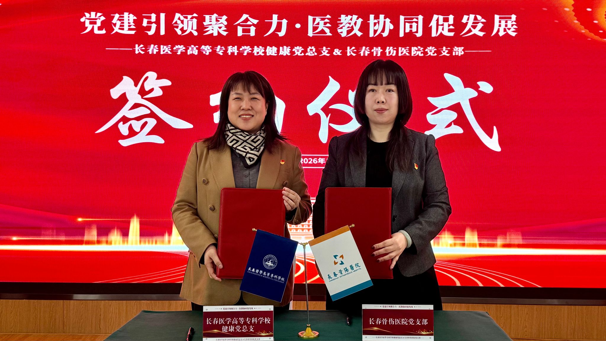 蓝图已绘就,奋进正当时。此次党建共建签约仪式的圆满举行,开启了双方以高质量党建推动高质量发展的新篇章。未来,健康党总支将以此次共建为契机,充分发挥党组织的政治优势与组织优势,将党建工作深度融入人才培养、科研创新、社会服务全过程,依托与长春骨伤医院的合作平台,持续优化 “校院协同、工学结合” 的育人模式,培养更多兼具扎实理论功底、精湛实操技能与高尚职业素养的医药卫生人才,为职业教育高质量发展、区域健康事业进步作出新的更大贡献!