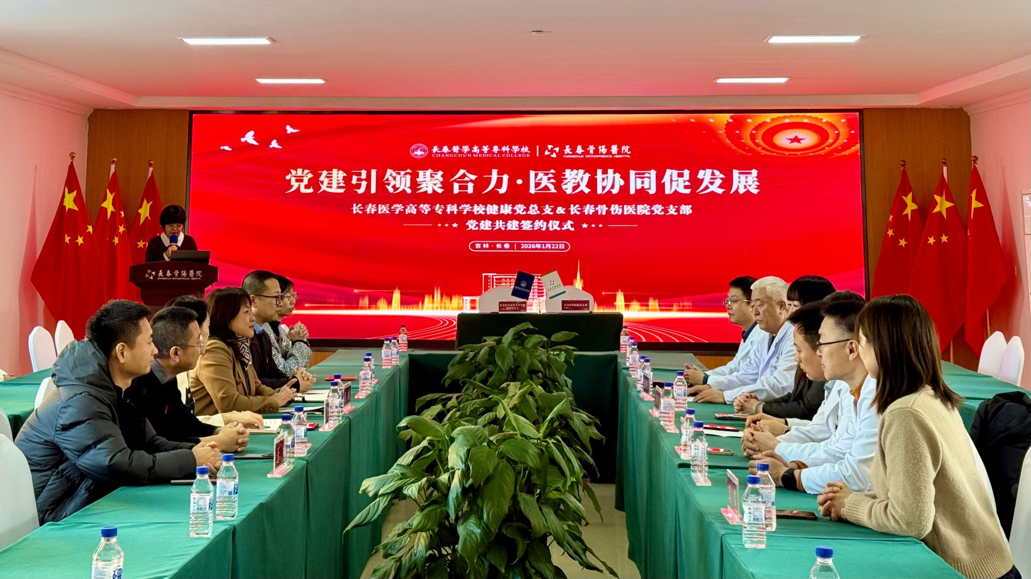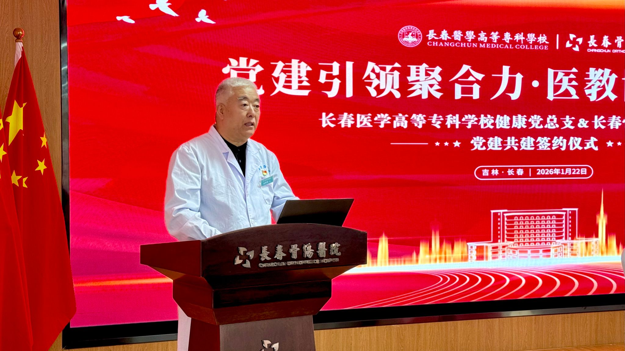 为深入贯彻落实习近平新时代中国特色社会主义思想和党的二十大精神,锚定职业教育高质量发展方向,深化产教融合、医教协同育人机制,学校健康党总支与长春骨伤医院党支部正式启动党建共建项目,以“党建引领、资源共享、人才共育、科研共促” 为核心,创新探索“教育 + 医疗 + 党建”三位一体融合发展新路径,为培养高素质医药卫生技术技能人才、服务区域健康事业发展筑牢红色根基。