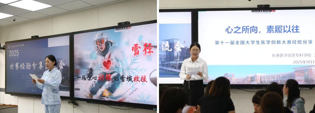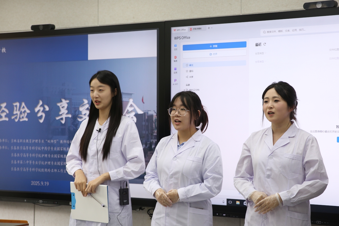 我校2024级药学2班毕欣茹、刘津畅,2023级中药2班王宇娇以行云流水的操作、默契高效的团队配合,将药学专业技能的严谨性与精准度展现得淋漓尽致;长春市第二中等专业学校2022级护理1班赵芮涵分享的雪域救援项目,从创新设计理念的萌生到标准化执行流程的落地,生动呈现了职业技能与实际应用需求的深度融合;我校2024级护理4班王美晰结合全国大学生医学创新大赛参赛经历,着重强调科研能力与创新思维对职业技能进阶的“赋能作用”,为在场师生带来兼具实践价值与启发意义的分享。