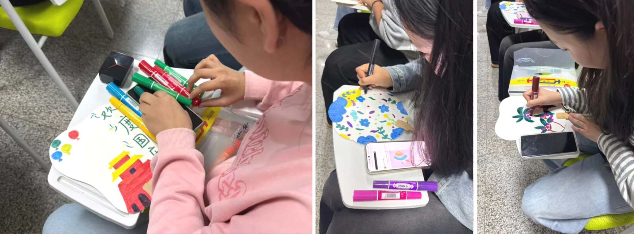 在手绘国庆扇面活动中,同学们以画笔为媒,勾勒山河壮丽,点染盛世华章。一幅幅色彩斑斓的扇面,不仅是创意的绽放,更是青年一代对祖国最深情的告白。