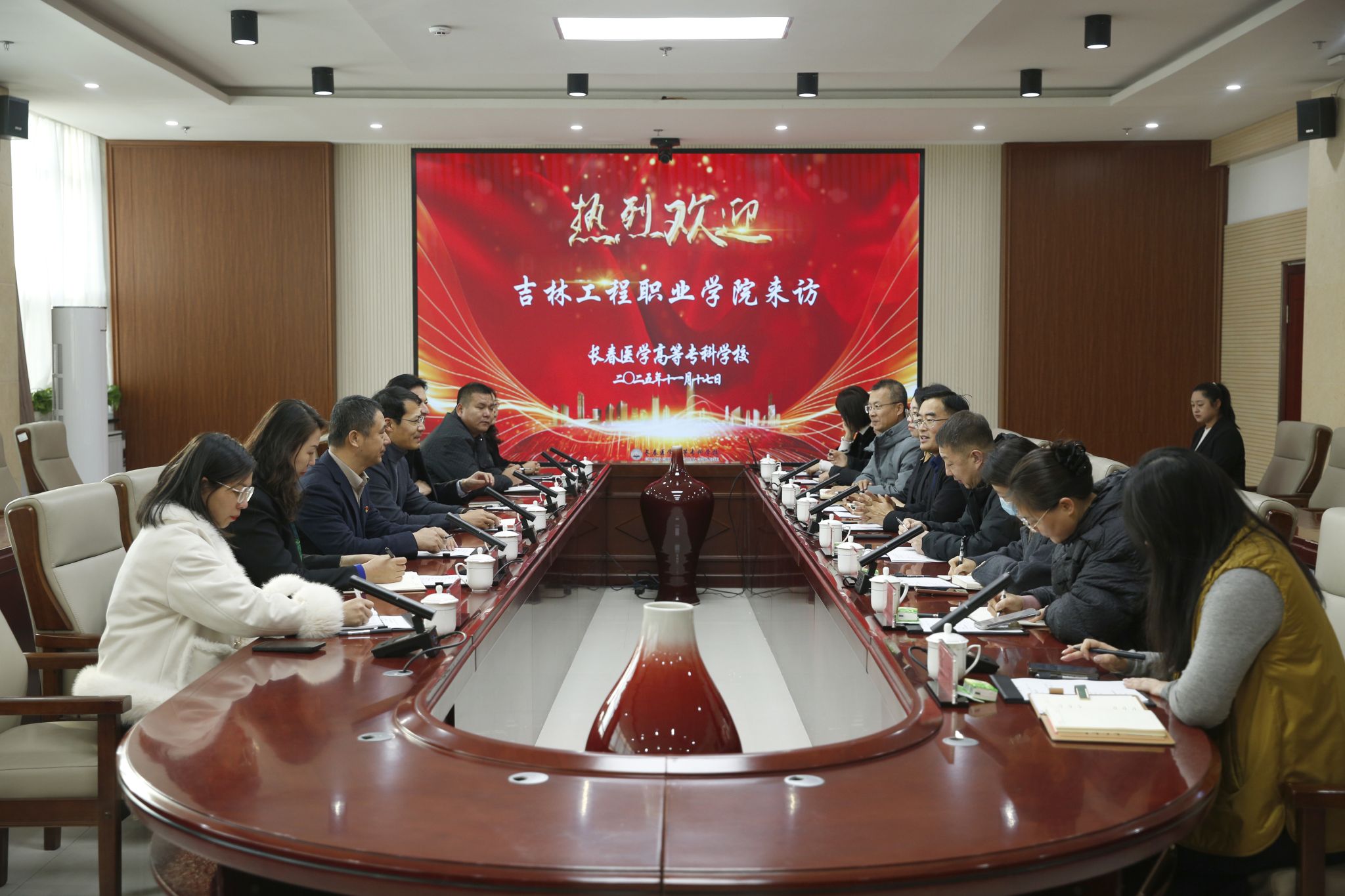 11月17日上午,吉林工程职业学院副校长沈成君率队一行7人莅临我校,围绕职业教育高质量发展核心议题开展专题调研交流。学校校长袁兆新、副校长刘洋及相关部门负责人热情接待调研团,双方在善教楼二楼会议室举行座谈交流。