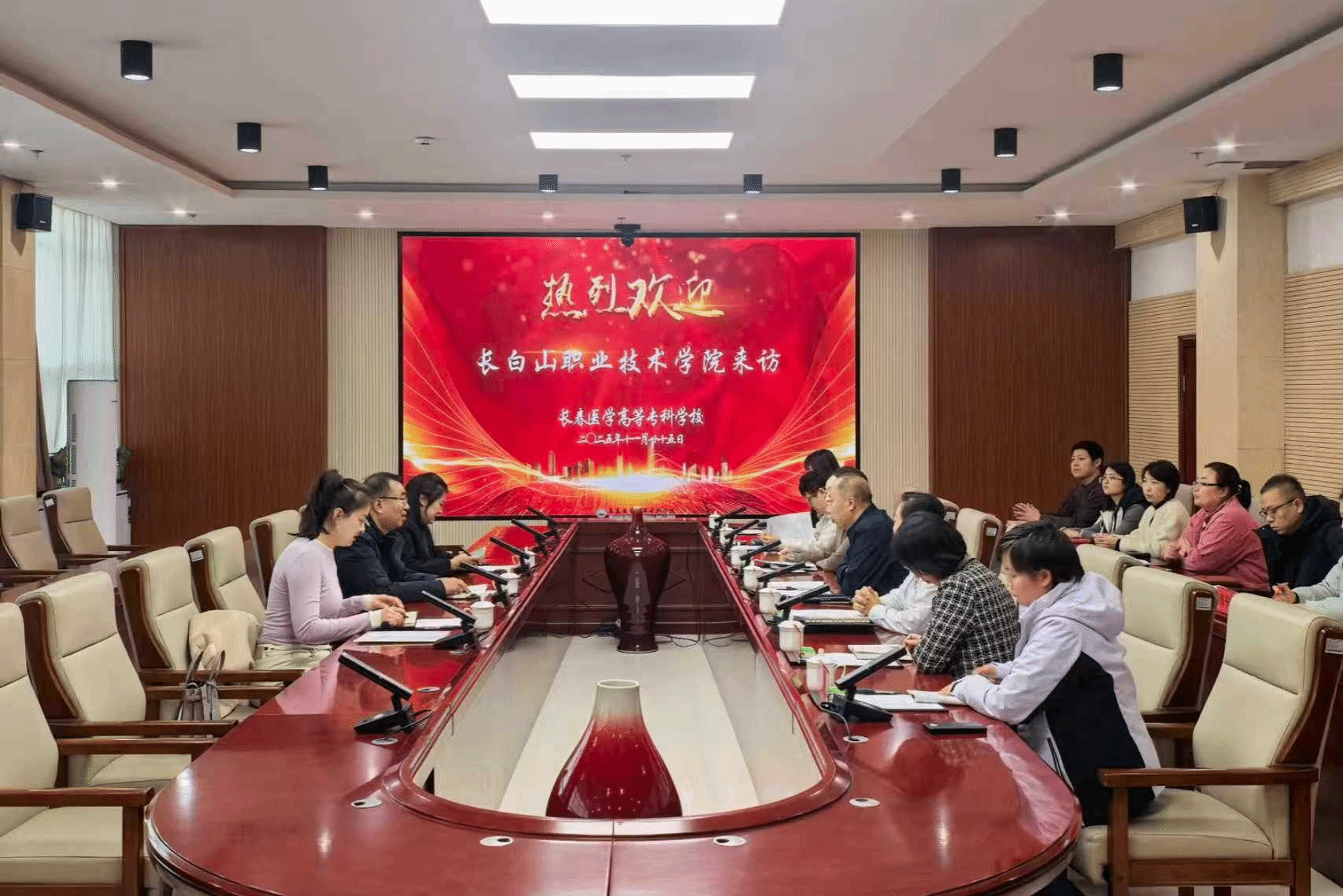11月25日下午,长白山职业技术学院党委委员李宏亮、学生处处长李羽楠、办公室副主任英祖萍一行3人莅临我校,以“数字化系统建设与办学管理提质”为核心主题开展调研交流。学校党委副书记高洪宇出席并主持会议,办公室主任刘洪波、信息部主任马艳慧、学生处处长刘思雅及相关部门同志参加会议,会议在善教楼二楼会议室进行。