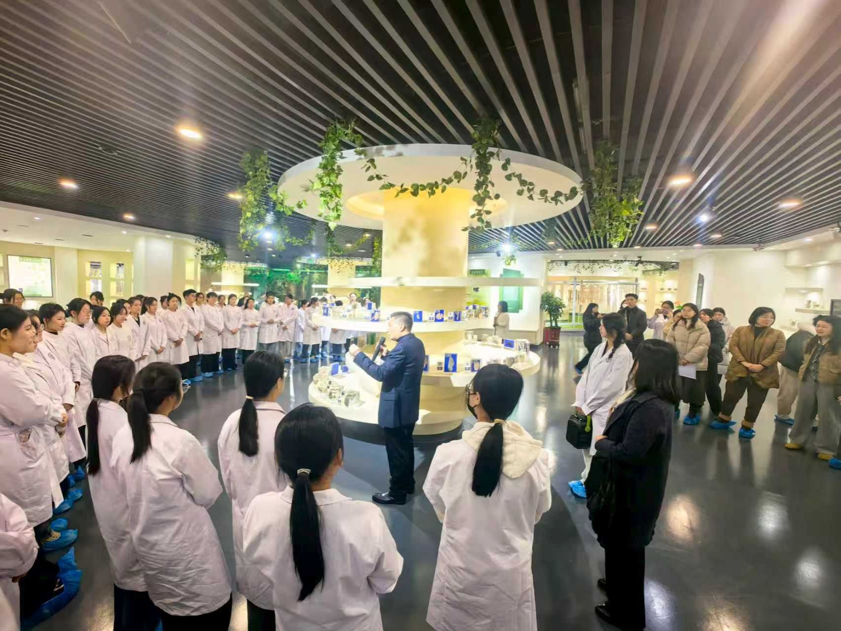 活动伊始,于景龙教授引领师生缓步穿行于生命科学馆的各个展区。这座凝结着于教授等一代代建设者心血的场馆,每一件标本的陈列都暗藏育人巧思:从胚胎发育的完整序列到人体系统的精细解构,从正常组织的温润形态到病理标本的警示呈现,原本静默的标本不再是单纯的教学工具,而是承载着双重敬意的精神载体 —— 一重是对医学事业的赤诚坚守,每一块标本都是医学知识薪火相传的坚实根基;二重是对生命的至高敬畏,每一件标本背后都镌刻着 “无言良师” 的无私奉献。“每一块标本背后,都藏着一份对医学事业的赤诚,更镌刻着对生命的至高敬畏。”于教授的讲解温和而深刻,如春雨润物般引导师生在细致观察中沉淀思考,为后续的深度分享筑牢思想根基。