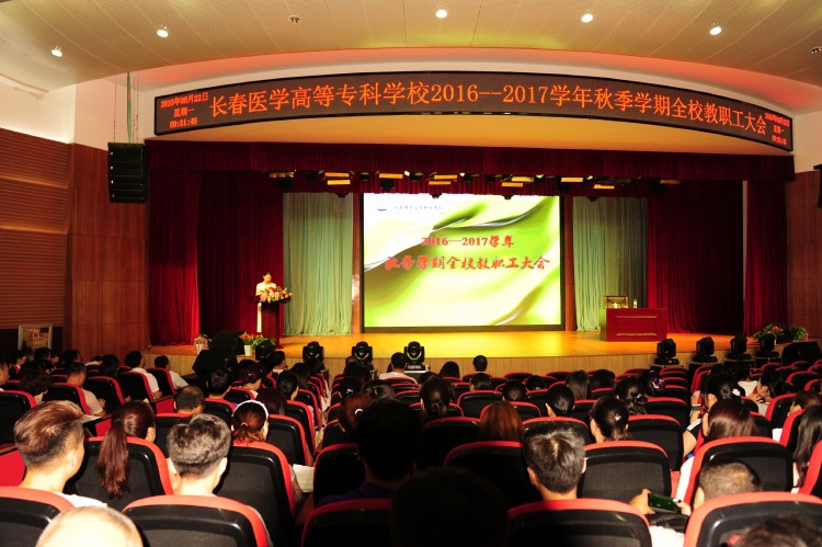 8月22日上午,伴随校歌庄重悠扬的旋律,我校于图书馆二楼报告厅召开了“2016年秋季学期全校教职工大会”,校领导班子和全体教职工参加会议。大会由校办主任王晓丹主持。