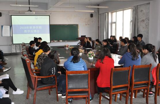 15级、16级的学委代表本班学生发言,学生本着实事求是的态度,根据部分课程的开课情况,对相关课程的教学内容、教学方法、学时设置和教学环境等方面提出了宝贵的建议,并对本学期授课老师的教学给予了中肯的评价。