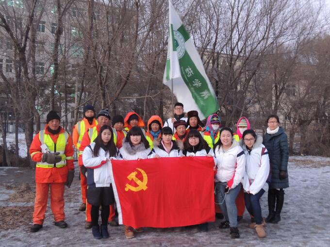 11月28日晚,支部组织委员袁宝欣老师带领药学党支部第十六期入党积极分子培训班的8名学员代表,来到长春市经开区环卫处在东方广场的工作地点,代表全体学员为工作在这里的15名一线环卫工人送上了大家用爱心捐献得来的钱购置的保温杯,希望环卫工人们能在寒冷的冬日里喝上一口热水,令环卫工人们十分感动。15级学员代表左佳鹤表示:此次活动让他们体会到了奉献的乐趣,增强了对党的性质和宗旨的理解,更加坚定了入党的决心,在思想上、行动上又向党组织迈进了一大步。