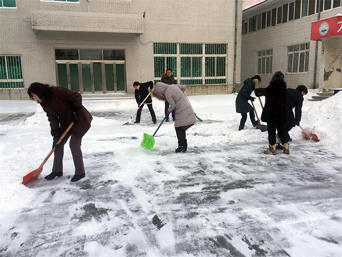教工自发扫雪 确保校园安全