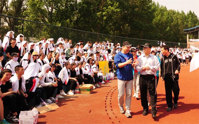 下午的运动场上更是高潮迭起。三点钟,省教科文卫体工会主席梁艳媛,市教科文卫体工会主席赵娜、尹宇琦,吉林艺术学院工会主席汪国刚、长春大学工会主席吕中华、长春职业技术学院工会主席幺占东等莅临,观摩我校教工的广播体操表演。在副校长赵欣的率领下,213名教职员工共同演绎了第一套戏曲广播体操,他们整齐划一、舒展优美的体操动作,让来宾和全校师生领略了中华戏曲文化的优美,展示了我校教职员工为师、亦为范的综合素质。来宾们盛赞各位老师们不仅是莘莘学子们的引路人,更社会精神文明建设的传播者。三点二十分,我校第一届师生足球友谊赛为运动会献礼,友谊赛总计30分钟,旨在推广校园足球,丰富师生文化生活,构建和谐校园。比赛由国家级裁判员王晓丽担任主裁判,包括姜元生在内的教工代表队和学生代表队一改教室内的严肃与拘谨,在运动场上展开了力量与速度的角逐,他们用运动强化身体,用艺术诠释生命,一起在绿茵场上挥洒青春,追逐梦想。与此同时,教工两千米有氧走也在同步进行,各位老师顶着炎炎烈日,克服着高温酷暑,展示出乐观的心态、健康的体魄和顽强的毅力。