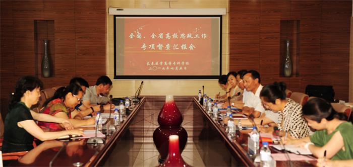 督查组听取了我校思想政治工作自查情况汇报,并与学校领导、中层干部、教师代表等召开了座谈会,认真查阅了学校自查报告及相关资料,重点对我校贯彻落实全国、全省高校思想政治工作会议精神情况以及落实党委意识形态工作责任制情况等进行了督查指导。