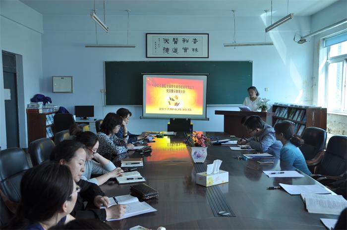 会上,高雅静带领全体党员学习《中国共产党普通高等学校基层组织工作条例》、《关于在全省推进“两学一做”学习常态化制度化中深入开展“学习习近平总书记重要指示精神,争做黄大年式共产党员”的主题教育方案》等文件精神。组织全体党员共同观看了党性教育片《警钟》,恰逢我校第三次党员大会召开之际,要求各位党员要以身作则,严于律己,保证换届风清气正。