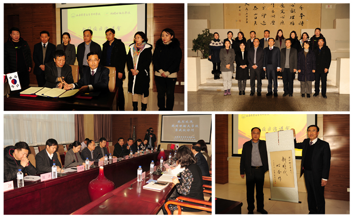 会议最后,姜元生书记向韩国世翰大学校赠予亲笔撰写的书法作品,双方互相赠送纪念品并合影留念。