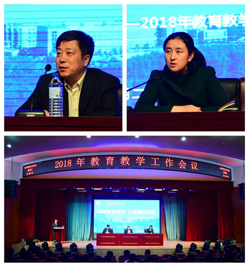 最后,薛春志做“肩负发展新使命迈向筑梦新征程”的重要讲话。他指出,在十九大胜利召开和两会刚刚落幕的新环境下,职业教育和卫生事业的发展定位和要求都有了新的变化,面对学校发展的新机遇,他对全校教育教学工作提出了六项具体要求:一是全体教师要根植职业教育,勿忘医学本质,要充分发挥产教融合、校企合作模式的办学优势,不断加强工学结合、凸显医学职业特色。二是要紧跟卫生健康事业发展,立足本省社会经济发展需求,优化专业结构、突出内涵特色,突出服务地方、服务行业、服务基层的办学理念,加强内涵建设。三是全校教职工要转变理念思路,拓宽办学领域。在规模扩张、质量提升的发展背景下,教学工作要主动转变,积极应对,扩大优势,消减弱势,增强专业吸引力。四是全体教师要加快提升信息素养,促进教学改革。加强信息技术与教育融合,加快革新教学模式。五是加强校企合作、创新培养模式。医学教育是校企合作办学的经典范例,持续加强合作的深度和广度,进一步彰显医学人才的培养特色。六是落实诊断改进,注重质量监控。诊改工作既是教育行政部门的要求,也是我们不断完善自身的需要。诊改的核心在教学,要围绕教学的各要素展开,每个人都要积极思考,认真落实。