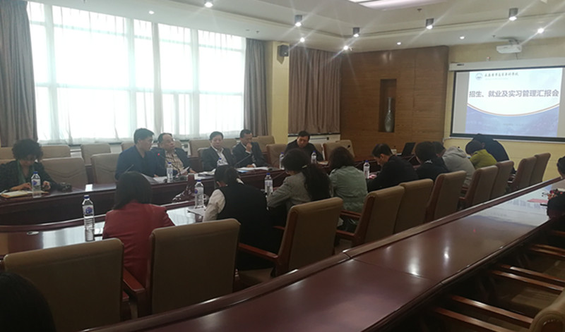 4月26日下午,招生就业及实习工作汇报会在善教楼二楼会议室召开。校领导班子、学校办公室、招生就业处和各学院分管领导参会。会议由副校长袁兆新主持。