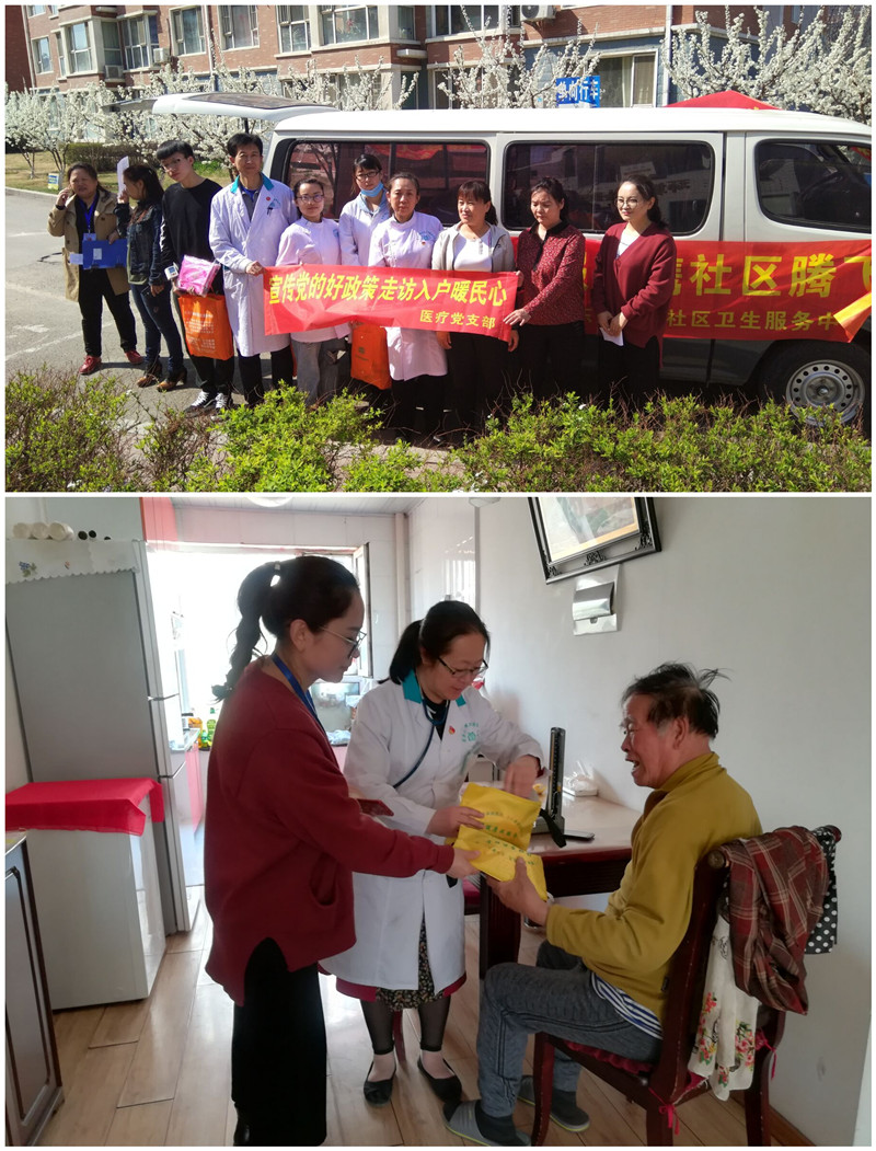 为深入贯彻学习党的十九大精神,深刻领会习近平新时代中国特色社会主义思想,进一步推进“两学一做”学习教育常态化、制度化,社区医疗党支部全体党员在支部书记张鏖谧同志的带领下,4月24日下午,走进东方之珠小区宣传党的政策并入户为居民提供医疗服务。