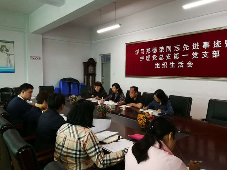 上午10:00,护理党总支全体成员首先在总支副书记王宁同志的带领下学习了学校党委2018[31]号文件,落实了召开组织生活会的具体要求;并观看了郑德荣同志先进事迹的专题纪录片。中午12:00和下午15:00,第一、第二党支部分别召开了组织生活会。会上,支部书记李宏、曹玉凤分别代表支部进行剖析整改汇报,查摆了教学、思想理论学习、与支部成员交流谈话、发挥传帮带作用、学生党员培养教育等方面的问题,并列出了相应的整改措施。支部全体党员以郑德荣同志为榜样,对照先进找差距,见贤思齐、检身正己,结合自身实际工作查找存在问题,查摆自身差距和不足,深入剖析问题根源,严肃认真开展了批评与自我批评,明确今后努力发展方向。