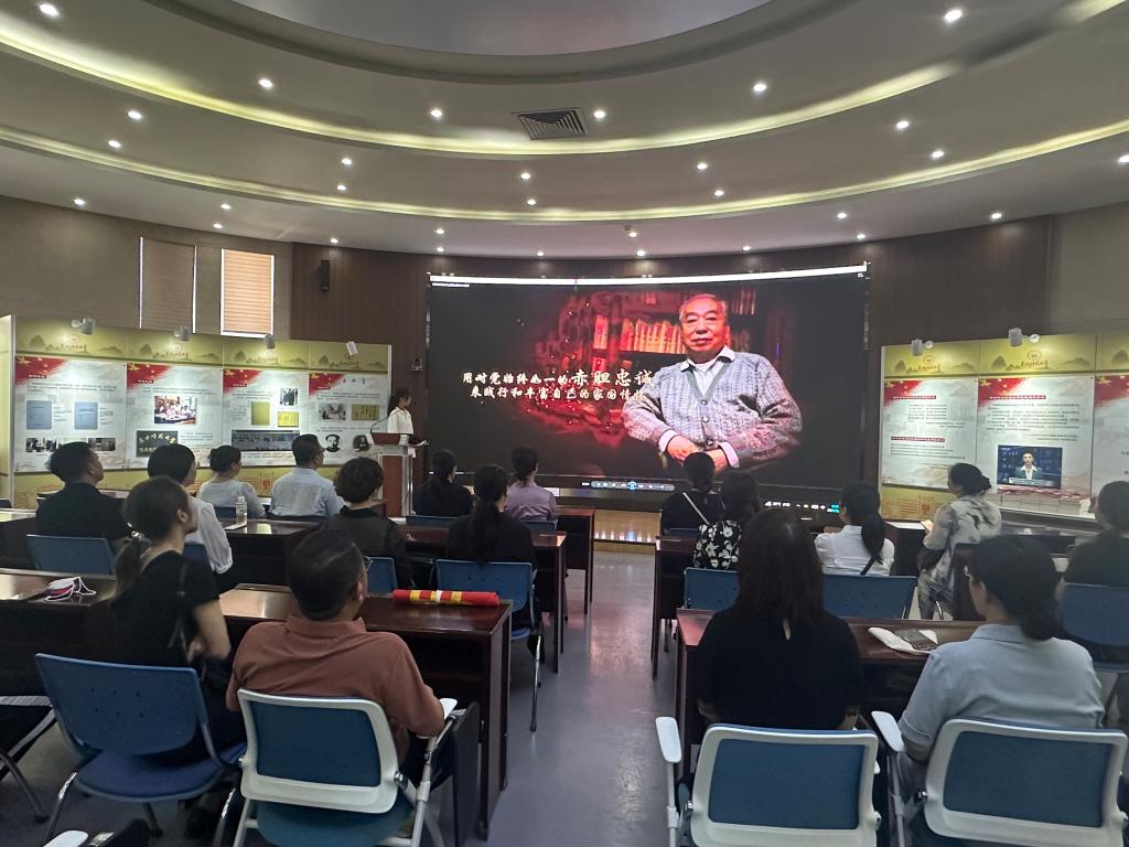 在郑德荣学院的展厅内,教师党员们首先观看了纪录片《红色理论家郑德荣》,详细了解了郑德荣同志的生平事迹。郑德荣同志一生信马、传马、护马的崇高信仰,忠诚于党、忠诚于国家、忠诚于人民的伟大人格,以及严于律己、教书育人、身先垂范的高尚品感染了在场的每一个人。随后,大家在讲解员的引导下参观了郑德荣同志的学术著作、荣誉奖章、生前手稿、往来信函等珍贵展品。这些展品生动地展现了他作为一名共产党员和教育工作者的责任与担当。郑德荣同志在60岁以后累计培养博士生49名,80岁到90岁申请国家级课题3项,书写学术著作5部,发表论文70多篇,直到生命的最后一刻他依然坚持指导学生修改论文。他的这种生命不息奋斗不止的奉献精神鼓舞了在场的每一名党员。活动最后,全体党员在赵欣的带领下重温了入党誓词。一句句誓言铿锵有力、掷地有声,进一步坚定了党员同志们对党忠诚、为民服务的初心和使命。