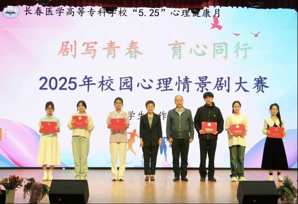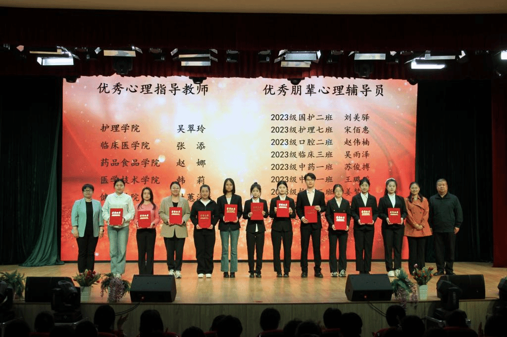 经过评委的认真评审,药品食品学院的《寻梦星辰》荣获一等奖;医学技术学院的《两个我》和大学生艺术团与心理协会的《成长》获得二等奖;健康学院的《焦虑来信》、护理学院的《寻心》、临床医学院的《MBTI人格探寻之旅》获得三等奖。杜影、高洪宇为获奖代表颁奖。刘思雅宣读了《2025年心理健康月表彰决定》,雷振春、高雅静、杨敬然为优秀心理工作者获奖代表颁奖。