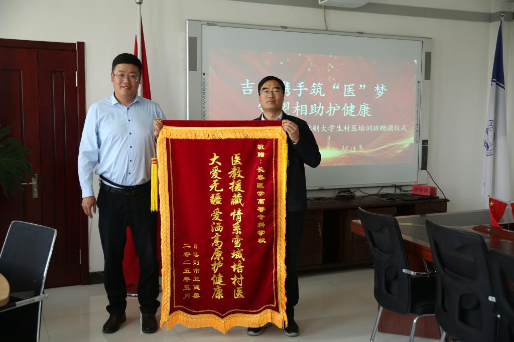 吉林省援藏干部李杰代表日喀则市卫健委向学校赠送锦旗,对我校的培训工作予以充分肯定。