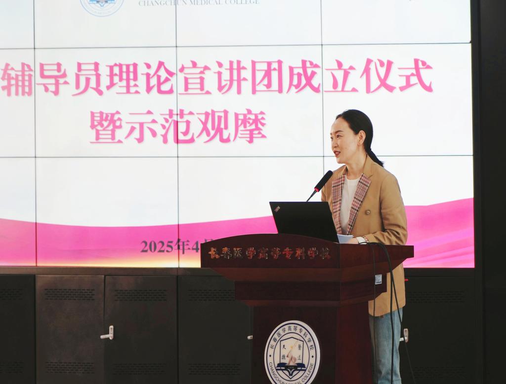 谋篇布局,靶向施策凝聚育人合力。辅导员理论宣讲团的组建是学校深化“大思政”建设的重要举措,是辅导员队伍建设向专业化、职业化、专家化发展迈出的关键一步。成立仪式上,刘思雅部署工作时强调,要通过宣讲团建设实现三个维度育人效能的提升:一是构建矩阵联动机制,打破单兵作战局限,凝聚辅导员专业优势形成协同育人合力;二是推进专业赋能转型,立足“Z世代”学生认知规律,激活“故事浸润+理论滋养+行动践行”思政育人模式;三是深化价值引领路径,以医者仁心为精神内核,通过具象化、生活化的沉浸式实践,让红色基因在潜移默化中生根发芽、抽枝展叶。