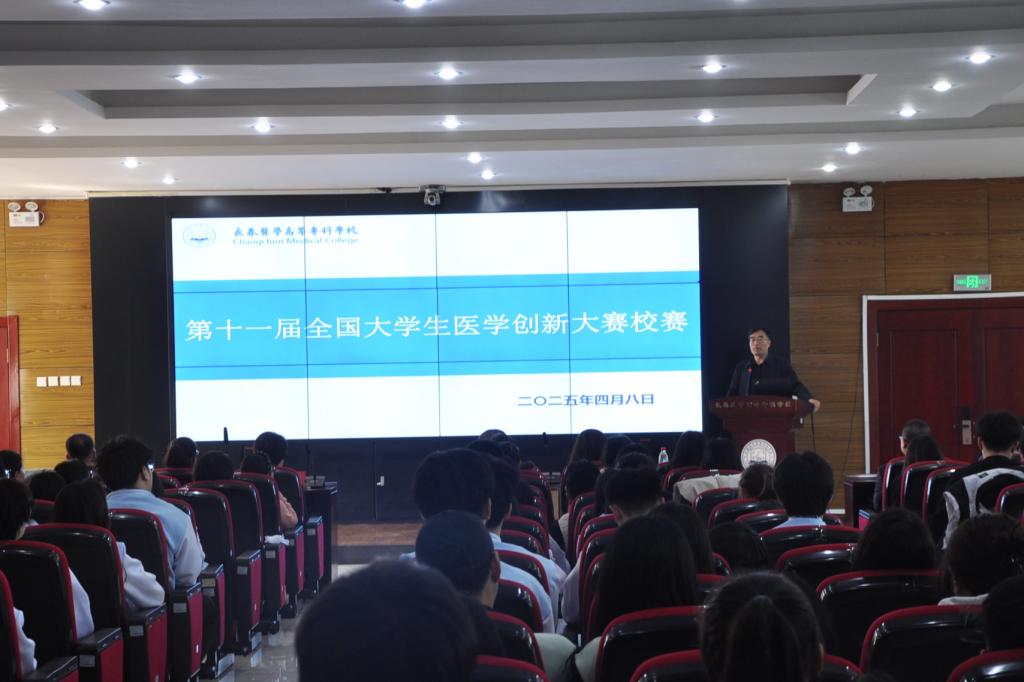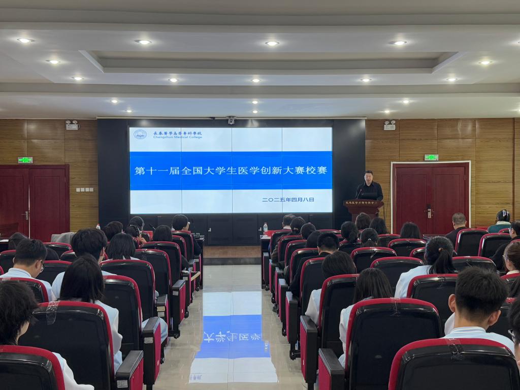 为深化医学教育改革,落实《国务院办公厅关于加快医学教育创新发展的指导意见》要求,学校基础医学部于4月8日下午在善教楼二楼报告厅成功举办第十一届全国大学生医学创新大赛初赛暨“一带一路”国际竞赛选拔活动。活动特邀吉林大学基础医学院孙连坤教授、辛颖教授、苏静教授及杨巍教授担任评审专家,我校校长袁兆新、副校长刘洋、教务处处长孙晓琪、基础医学部教学负责人何凤云、党总支书记李桂波及副主任解蕙铭等领导出席活动,全体无课教师亦参与其中,同时,各院部学生代表也前来观摩了比赛。比赛由基础医学部办公室主任宋佰慧主持。