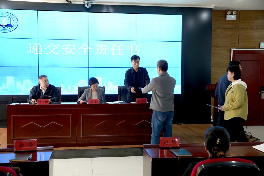 会上,各部门、处室负责人向袁兆新递交《安全责任书》。学校领导班子成员、科级及以上干部、教研室主任参加会议。(文:朱冠达 图:李雪 审核:赵环宇 保卫处供稿)