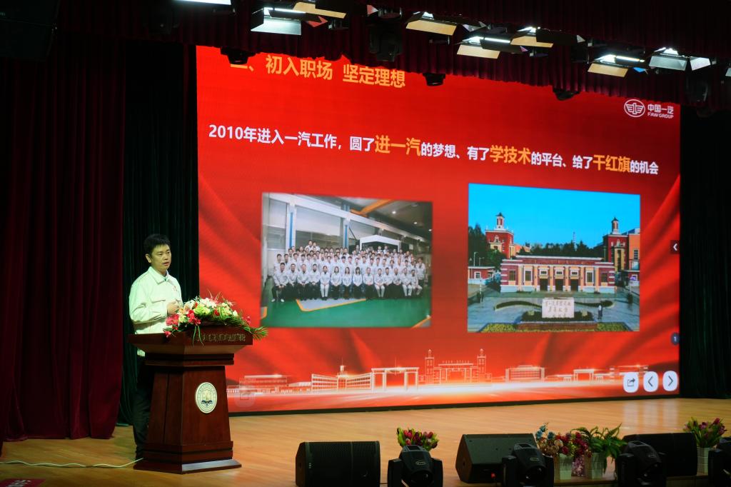 作为民族汽车工业发展的亲历者,杨永修结合吉林振兴发展的历史机遇,号召青年学子:以“扎根吉林的信念”,在守护人民健康的一线践行责任与担当。他鼓励同学们:“奋斗从不分学历高低,无论是汽车制造还是医学领域,匠心的核心在于扎根热土、勇攀高峰,只要脚踏实地学知识、练技能,就能够长本事、有收获,每位奋斗者都能成为国家之栋梁。”