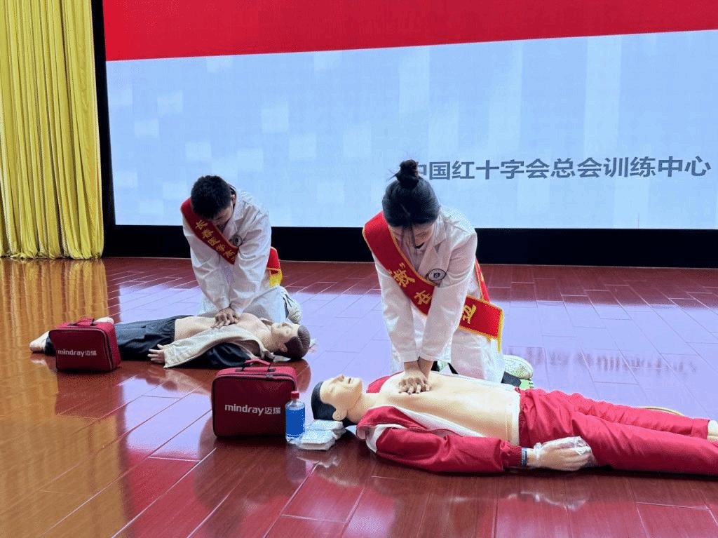 在夯实专业淬炼的基础上,学校持续通过杏林青年志愿者队伍这一移动育人平台,将急救志愿服务深度融入思想政治教育体系,积极打造具有实践育人特色的“行走的思政课堂”。一年来,通过情景模拟教学法、校内外多部门联动等多元化实践场域,先后策划实施了地铁枢纽及体育运动场馆急救技能巡展、轨道交通突发事件应急演练培训、急救知识进社区等项目,其中包含8场“心肺复苏(CPR)”“突发晕厥”“创伤包扎”标准化急救流程演示、2次应急响应模拟训练,累计覆盖市民超2000人次,形成“专业培育+思政引领+志愿服务”三位一体的育人闭环。
