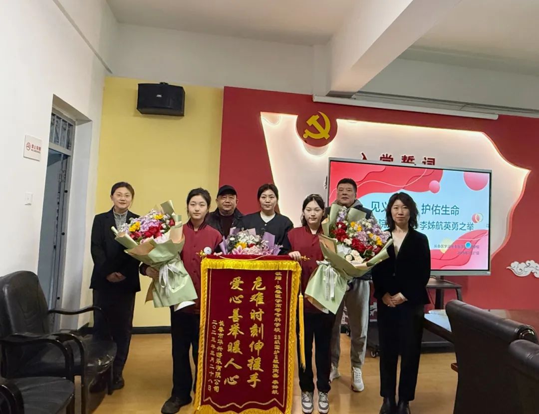 三月的春风尚未拂尽料峭,长春南湖的碧波已悄然见证了一场生命救援的壮歌。3月28日,一队特殊的访客踏着春光走进校园,南湖公园华星游乐有限公司工作人员手捧鲜花与锦旗,将写着“危难时刻伸援手,爱心善举暖人心”烫金大字的锦旗郑重递到护理学院两位学子和辅导员老师的手中。这一刻,锦旗上跃动的流光,恰似几日前那场与死神交锋时迸发的生命之光。