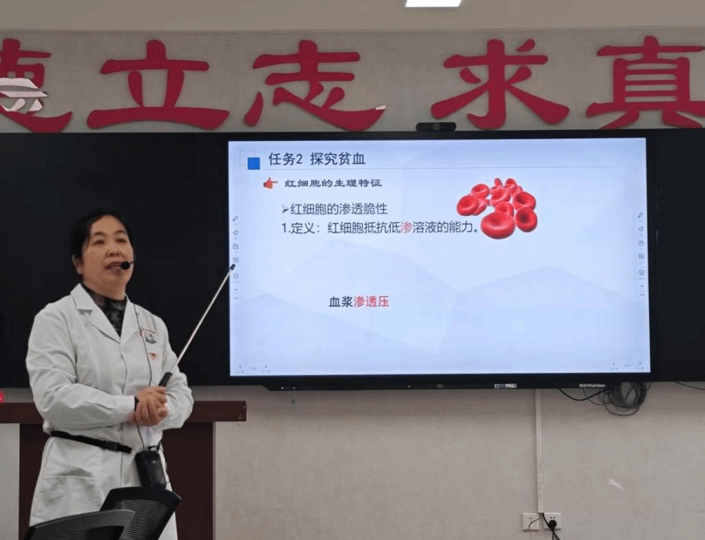 张健带领教学团队开展了创新性的模块化教学改革,通过精准的学情分析和任务驱动设计,精心打造了一系列旨在解决生理学“难理解、难记忆、难应用”问题的示范课程。在示范课中,张健以“探究贫血”为主题,构建“贫血诊断标准→临床表现→病因分析”的递进式任务链条,对教材内容进行创新性重组。精准契合学生的知识功底和认知水准,凭借“认知脚手架”的巧妙搭建,推动学生实现临床知识与基础理论的无缝对接,促进知识的高效转化,深度诠释“岗课融通”的教学精髓。与此同时,“骨髓捐献生命接力”的思政教学设计,巧妙地将知识传授与价值引领融为一体,达成二者的有机融合与协同增效。