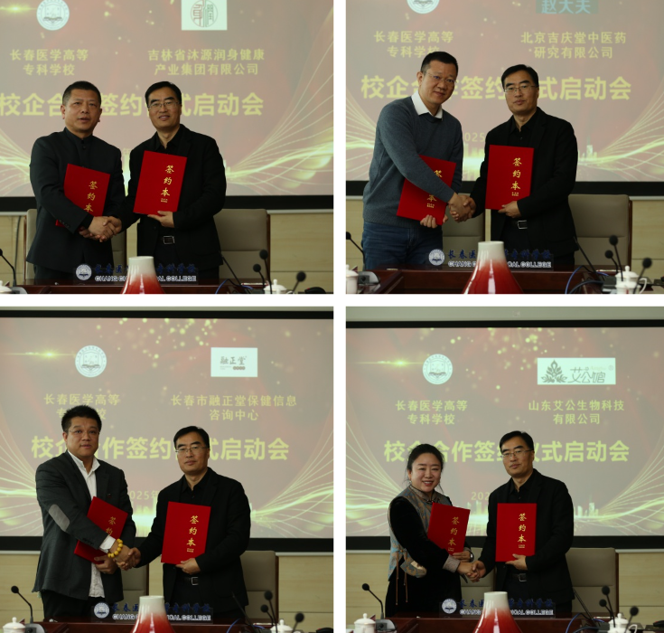 为搭建高质量校企合作平台,培养符合企业需求的职业技能人才,促进信息资源共享,推动职业教育改革与发展,实现教育与产业的深度融合,3月6日上午,我校健康学院在善教楼2楼会议室举行中医养生保健专业、体育保健与康复专业校企合作签约暨揭牌仪式。吉林省体育系统运动创伤医院院长禚志红,南关区君悦运动康复中心总经理王希朋,南关区恩曌实战运动康复中心总经理,孙曌,朝阳区方深体育健康服务中心总经理毕越洋,吉林省沐源润身健康产业集团有限公司董事长王君济,北京吉庆堂中医药研究有限公司总经理赵吉忠,长春市融正堂保健信息咨询中心总经理马建,山东艾公生物科技有限公司总经理曲英华等嘉宾出席签约仪式。我校校长袁兆新、副校长刘洋,教务处处长孙晓琪,健康学院院长张虹、教研室主任和专业带头人参加会议,会议由刘洋主持。