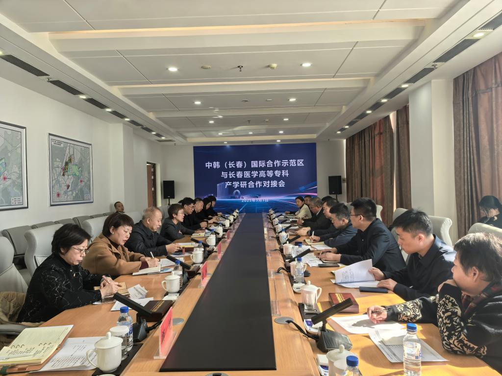 为深入推动大健康产业高质量发展,加强政校企之间的产学研深度合作,开展高水平对外开放合作,3月3日上午,我校党委书记杜影一行前往中韩(长春)国际合作示范区。中韩示范区党工委书记刘乃军、管委会主任汤大鹏、副主任张忠成等领导及企业代表,我校校长袁兆新、党委副书记高洪宇、副校长刘洋及相关院部、处室负责人出席会议。