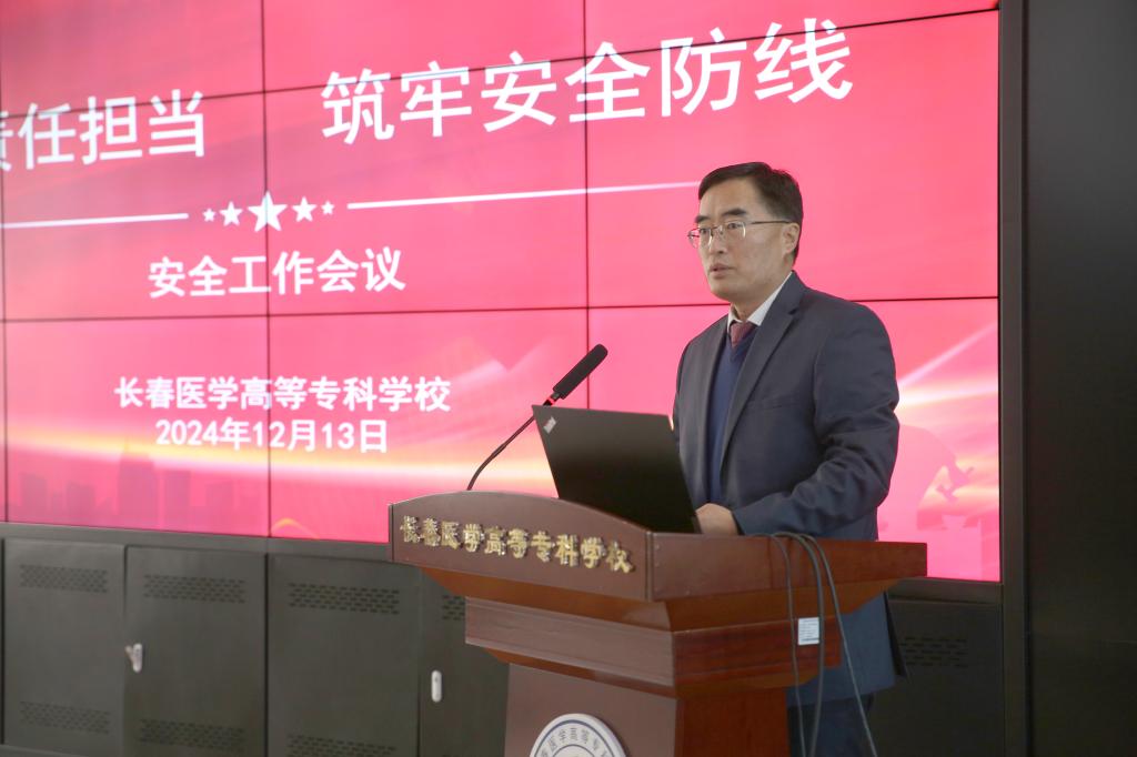 同时,袁兆新还强调要深刻吸取近期各类校园安全事故教训,举一反三、引以为戒,切实做到警钟长鸣、常抓不懈。一是要加强消防安全管理。紧盯教室、食堂、宿舍、实验室等重点场所,进行常态化排查整治,加强师生消防培训,提升火灾扑救和自救能力。二是要确保燃气、燃油安全。持续抓好校园燃气安全专项整治行动,严格燃气、燃油使用等各环节安全监管。三是加强校园安全防护。保卫处切实加强门卫管理,严格落实校园值班巡逻制度,加强校内重点部位和重点人员管理。四是加强实习实训场所管理。教务处要完善实践性教学安全责任体系,强化安全防控和应急处置能力。五是加强人员密集场所的管理。相关部门对食堂、宿舍、图书馆等重点部位要重点管理重点检查,遇到紧急情况能及时处置。六是加强学生心理健康教育。要全面开展师生心理健康状况分析,有针对性地开展心理健康教育和活动。七是加强各项合作项目以及在建项目的安全监管。各部门要按照“谁主管、谁负责,谁使用、谁负责”原则,做好安全排查,总务处要及时掌握建筑工地安全管理情况,各施工方要办理相关手续。八是加强食品卫生、疾病防控工作。总务处要认真落实加强学生集中用餐管理的政策,加强日常管理,消除食品安全隐患。九是加强假期安全管理工作。各单位、处室要认真开展安全隐患大排查,保障师生生命财产安全。
