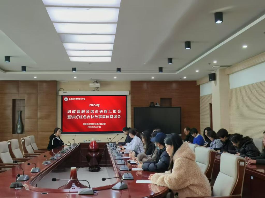 为更好发挥教师外出培训学习的实效性,强化思政课教师使命担当,不断提升思政课教师综合素养,进一步提升教学实效,落实立德树人根本任务,思政部思政教研室于12月4日,在善教楼二楼会议室举办2024年思政课教师培训研修汇报会暨讲好红色吉林故事集体备课会。活动由思政教研室主任孔一霖主持,思政课全体专兼职教师参加。