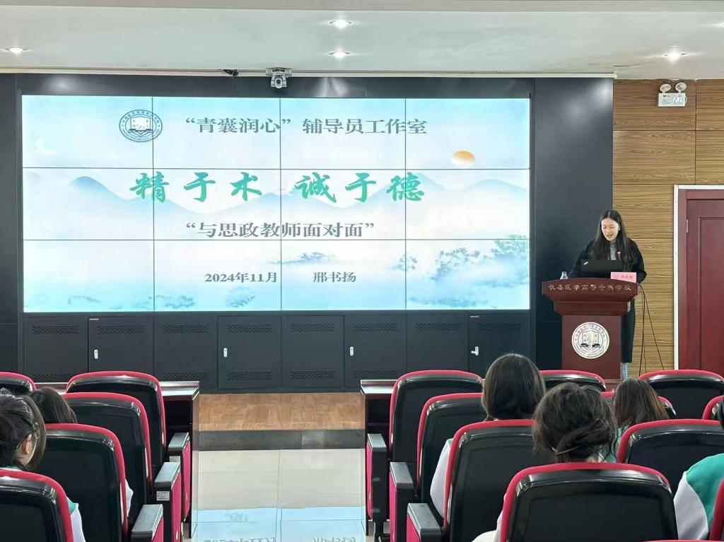 为贯彻落实全国教育大会和全国高校思想政治工作会议精神,进一步提升我院学生思想政治教育工作质量,更好地帮助我院学生树立正确的世界观、人生观、价值观。11月22日中午,健康学院邀请思政班主任邢书扬老师同2024级针推专业学生在善教楼二楼报告厅,举行“青囊润心”辅导员工作室系列活动“闻”字篇——我和思政教师面对面,共上一堂思政课活动。