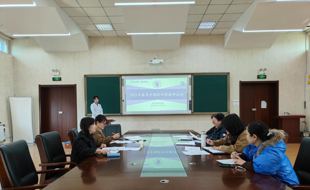 为进一步增强教师教育教学能力和专业素养,保证课堂教学质量,更好地落实立德树人的根本任务,结合教务部关于开展新开课教师试讲的工作部署,医学技术学院于11月20日上午,在善学楼五楼会议室举办了2025年春季学期新开课试讲活动。此次活动特邀请我校督学李玉波教授进行现场点评与指导,学院的各位院部督学成员以及新开课试讲的教师们也积极参与其中。活动由医学技术学院副院长王丹主持。