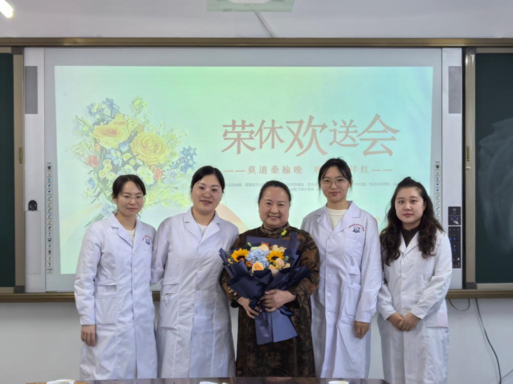 会上,大家通过短片《莫道桑榆晚 为霞尚满天》见证了李老师从初上讲台的青涩到如今的桃李芬芳,每一个阶段都见证了李亚芹老师的辛勤付出和无私奉献。王月珍代表学院为李老师献上鲜花,赠送了精心准备的礼物,这也承载着学院对李老师的关爱与祝福。年轻教师表演的诗朗诵《您温柔了春天》和24 级中药一班学生表演的歌伴舞《凑热闹》,为欢送会增添了青春的活力与朝气。现场教师纷纷表达对李老师的不舍与祝福:希望李老师“退休不褪色、轻松不放松”,在悦享轻松退休时光的同时,继续发挥自身优势,为学院发展出谋划策、为青年教师发展出力添彩。