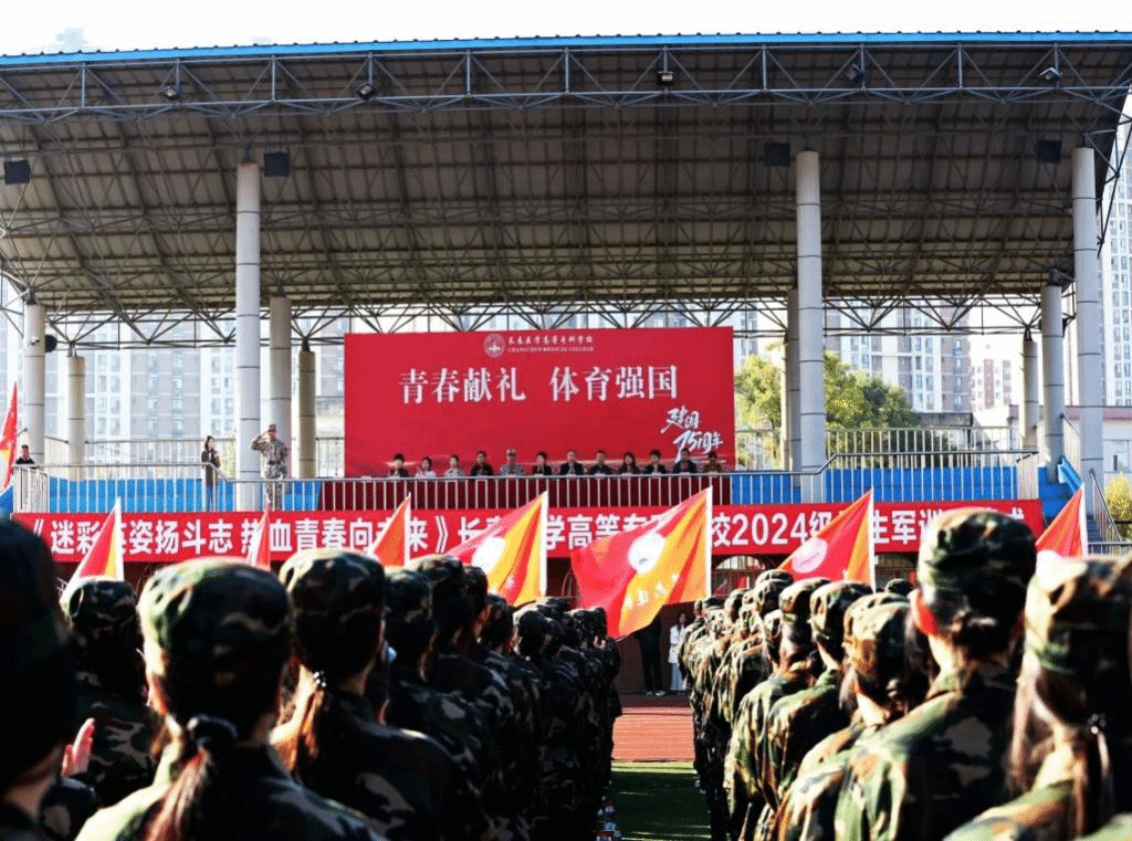 迷彩英姿扬斗志,热血青春向未来。10月8日上午8点,我校2024级学生军训开营仪式在体育场隆重举行,为期两周的军训正式拉开帷幕。中国人民解放军65370部队负责军官,长春医学高等专科学校党委书记杜影,党委副书记、校长袁兆新,党委副书记高洪宇出席仪式,各学院院长、党总支书记/副书记、全体专职学工人员、2024级辅导员及全体新生参加仪式。仪式由学生工作处副处长刘思雅主持。