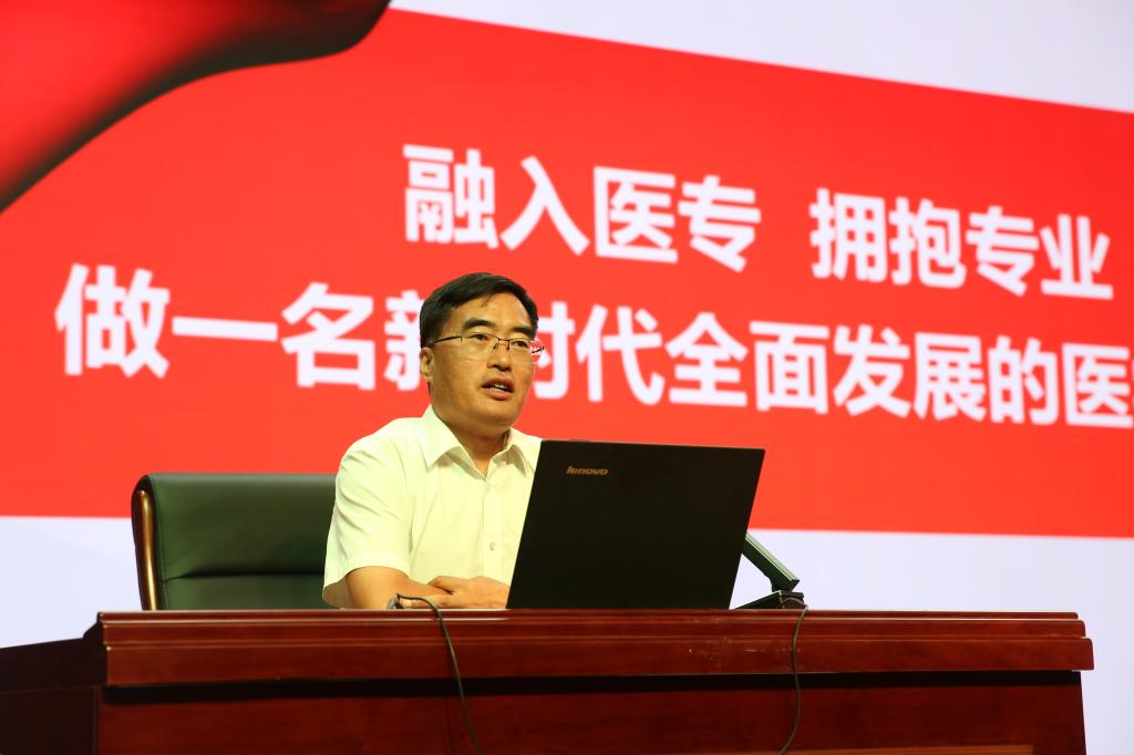 9月4日,在图书馆报告厅,校长袁兆新以《融入医专,拥抱专业,做一名新时代全面发展的医学人才》为题,为新同学们上了精彩一课。授课中,结合学习贯彻党的十二届三中全会精神,袁兆新介绍了学校的基本情况和发展趋势,对同学们的到来表示热烈欢迎,并勉励同学们争做“五术人才”,不断追求卓越:以救死扶伤的“道术”、心中有爱的“仁术”、知识扎实的“学术”、本领过硬的“技术”、方法科学的“艺术”做好人民健康的守护者。“如何让自己更优秀?”,面对同学们关心的问题,袁兆新建议大家“以德树人、以智化人、以体育人、以美成人、以劳塑人”,并从“遵规守纪、规划人生、刻苦读书、追求质朴和调试心理”五个方面,对新同学们提出了殷切希望,期盼同学们能以不懈奋斗擦亮青春底色,让医专成为同学们医药卫生事业的起点。