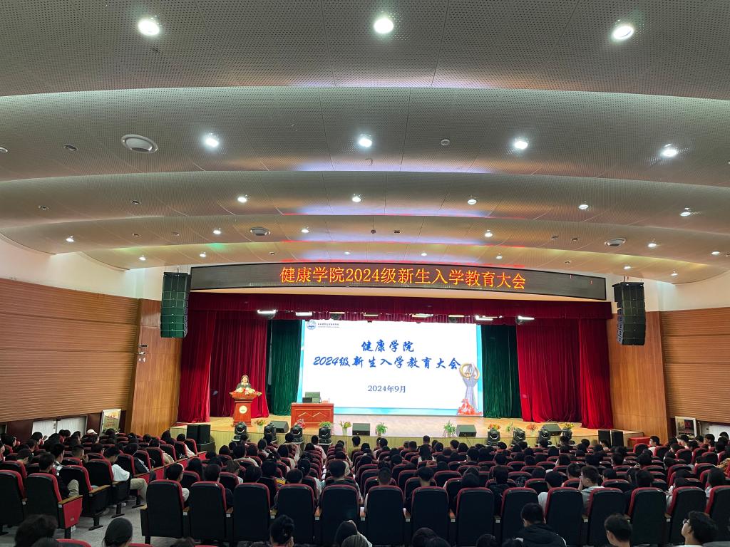 为引导新生树立正确的求学观念,坚定理想信念,提升专业认同感与自豪感,健康学院全体2024级新生于2024年9月2日,在图书馆报告厅开展新生入学教育大会。
