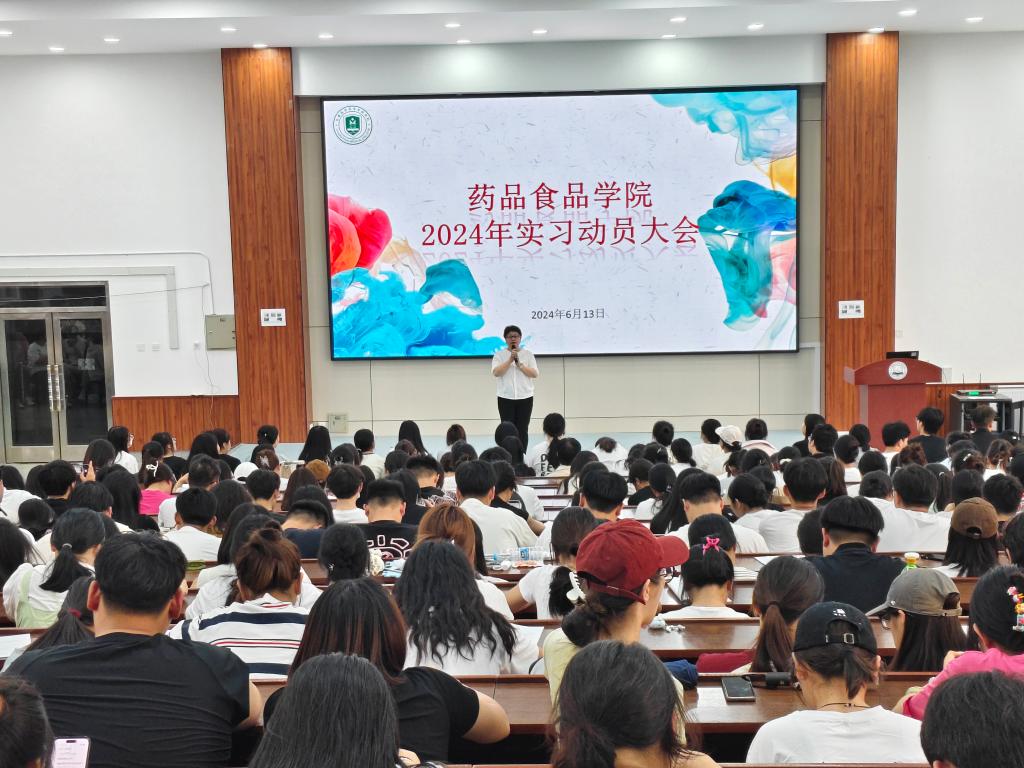 6月13日下午,药品食品学院在药学楼3348教室召开了2022级学生实习动员大会。大会旨在全面部署和指导学生进入实习阶段,确保实习工作顺利进行。药学党总支书记高雅静、学生工作办公室相关人员,2022级辅导员及全体学生参加了会议。会议由教学负责人汪岩主持。