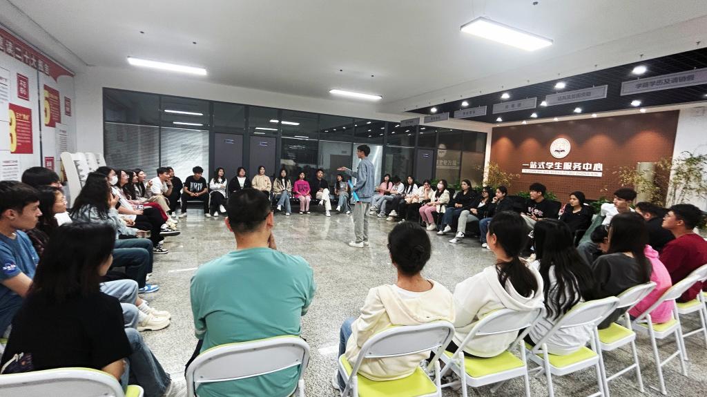 为有形有感有效铸牢中华民族共同体意识,5月22日,学生工作处聚焦疆籍学生考前焦虑、实习前压力,于我校“一站式”学生服务中心面向在校疆籍学生开展了“石榴籽心连心 石榴花开满芬芳”主题团体心理辅导活动,并集体欢送即将离校实习的2022级同学。学生工作处少数民族专职教师艾斯卡尔、新疆派驻教师刘霁莹及40名新疆籍学生参与活动。