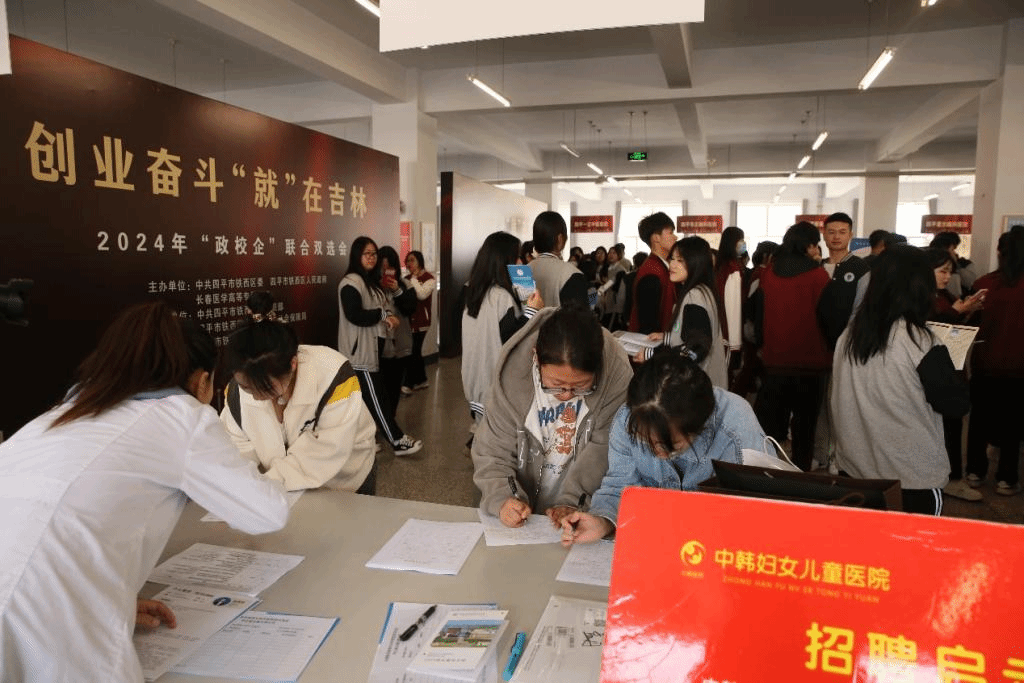 四平市神农医院、四平市吉奥脑病医院、四平市资生康复医院等11家医院参加本次活动,提供就业岗位214个,涵盖临床医学、口腔医学、医学影像技术、中医学、康复治疗技术等专业。来自11家医院的人力资源部工作人员精心准备,积极应对,通过派发宣传册、海报展示以及现场宣讲等方式,让求职学生更快速更直观地了解医院基本概况和独特优势。活动现场气氛热烈,1000多名毕业生及大一、大二在校生纷纷前来现场咨询,工作人员亲切交谈,耐心解答。铁西区人社局设立了政策咨询处,为学生讲解就业、人才、社保政策,现场接待咨询400余次,发放《初次创业补贴政策》《就业政策宣传手册》等宣传材料1000余份。