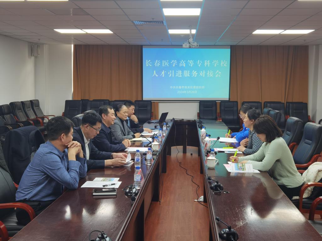 为进一步加强政校合作、供需对接,拓宽毕业生就业渠道,推进“访企拓岗促就业专项行动”走深走实,3月28日下午,副校长赵欣、招生就业处副处长刘丹丹等一行人3人来到南关区人民政府开展人才供需对接交流。南关区人社局、就业局、卫健局负责人参加会议。南关区区委常委、组织部部长焦明元及区人社局、卫健局局长参加座谈。