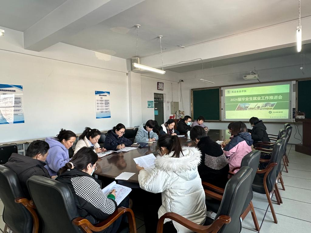 3月5日中午,药品食品学院在药学楼六楼会议室召开2024届毕业生就业工作推进会议,副校长孙莹、药品食品学院副院长王月珍、教学工作负责人汪岩和2024届毕业班辅导员参加会议。会议由药学党总支书记高雅静主持。