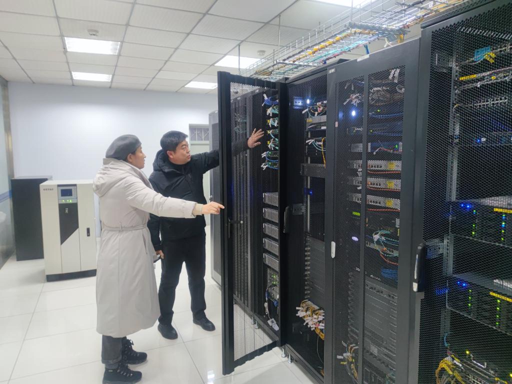 随后,赵欣对学校数据中心机房的设备进行了全面的检查,详细听取了设备使用期限、更新情况等,并要求定期巡查,以确保学校网络使用的顺畅和安全。