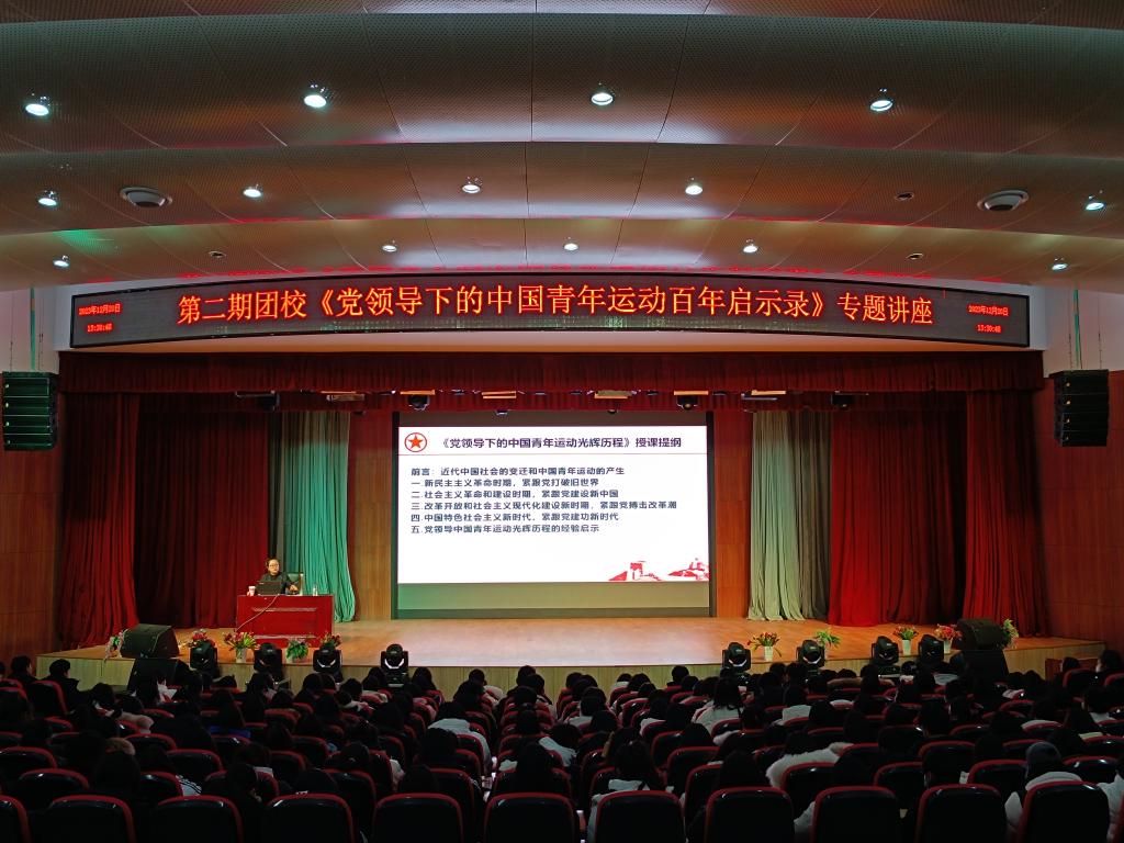 为进一步学习贯彻习近平总书记关于青年工作的重要论述,激发广大青年坚定与民族复兴伟业同频共振的理想信念,12月20日,学校邀请吉林省团校李彤老师在图书馆报告厅开展《党领导下的中国青年运动百年启示录》专题讲座,团校290余名学员参加。