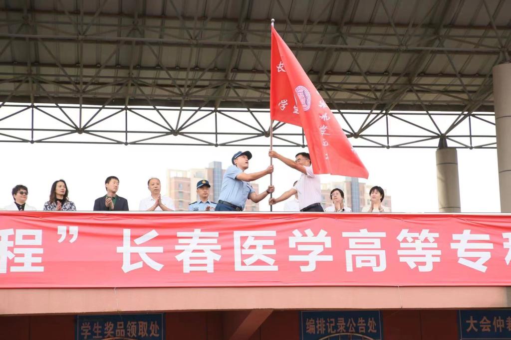仪式最后,袁兆新为2023级学生军事训练营授旗并宣布开营,嘹亮的开营口令响彻医专校园,伴随着铿锵的战歌,我校2023级学生军事训练正式拉开帷幕。