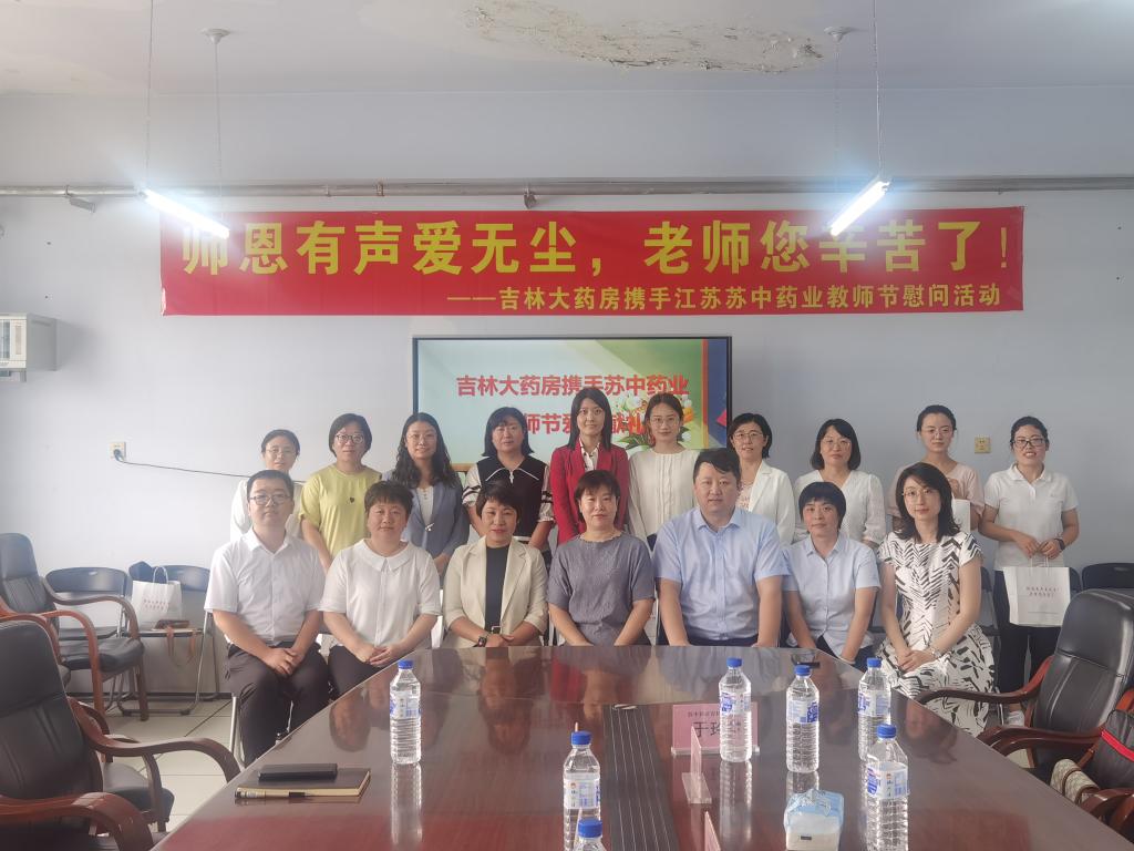 9月8日上午,在第39个教师节即将来临之际,吉林大药房携手苏中药业在药品食品学院六楼会议室举行了“师恩有声爱无尘 校企爱心捐赠活动”,吉林大药房药业股份有限公司营销管理部总监翟勋、人力资源部部长赵奕扬、业务经理于菁华,江苏苏中药业北大区经理邢健、吉林省区经理焦春花、吉林省零售经理于玲玲,药品食品学院党总支书记高雅静、副院长王月珍及部分教师代表参加此次活动。
