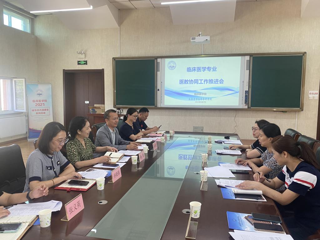 9月7日上午,临床医院在善教楼546会议室召开临床医学专业医教协同工作推进会。副校长孙莹,教务处处长孙晓琪、副处长张义英,临床党总支副书记杨敬然,学院相关人员参加了此会。会议还邀请了人民医院科教科科长田皓矾、魏雪,长春市中心医院科教科李敏三位专家。会议由临床医学院院长杨智源主持。