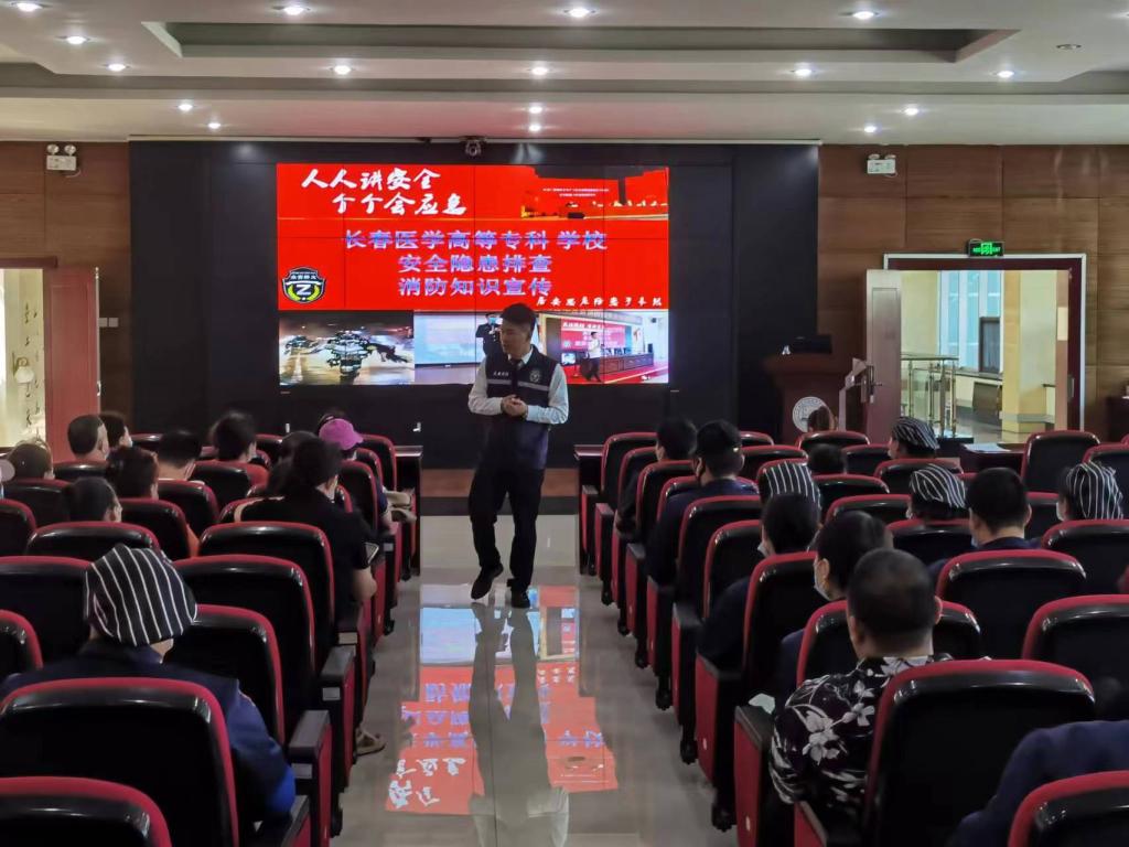 为了深入贯彻《教育部办公厅关于进一步做好学校安全工作的通知》(教电〔2023〕126号)及《长春医学高等专科学校消防安全标准化管理工作方案》长医高专校字(2023)19号文件精神,切实强化食堂员工对我校防火工作的重视及能力,总务处于5月18日下午在善教楼二楼报告厅,诚邀消防大队的王教官为全体食堂员工进行了安全隐患排查及消防知识宣传。
